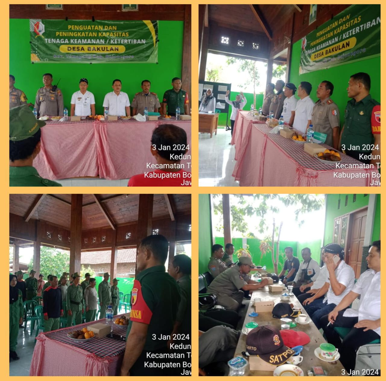 Hari rabu tanggal 03 januari 2024 jam 09.30 wib, penguatan dan peningkatan kapasitas tenaga kamanan dan ketertban desa bakulan kec temayang kab,bojonegoro...
