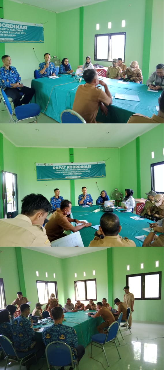 Hari Senin tanggal 17 April 223 Jam 09.30 wib s/d selesai rapat Koordinasi Fasilitator dan Asisten FasilitatorForum konsultasi Publik Resosek 2023 diKec.Temayang....
